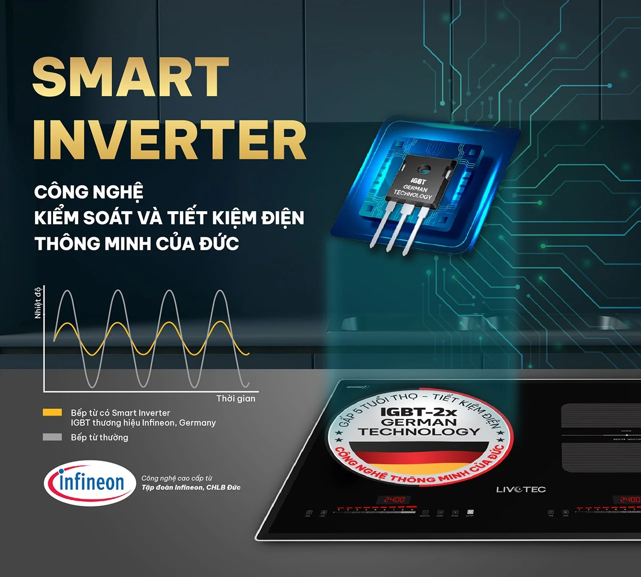- IGBT – Công nghệ thông minh của Đức: Kiểm soát dòng diện tối ưu, tiết kiệm điện