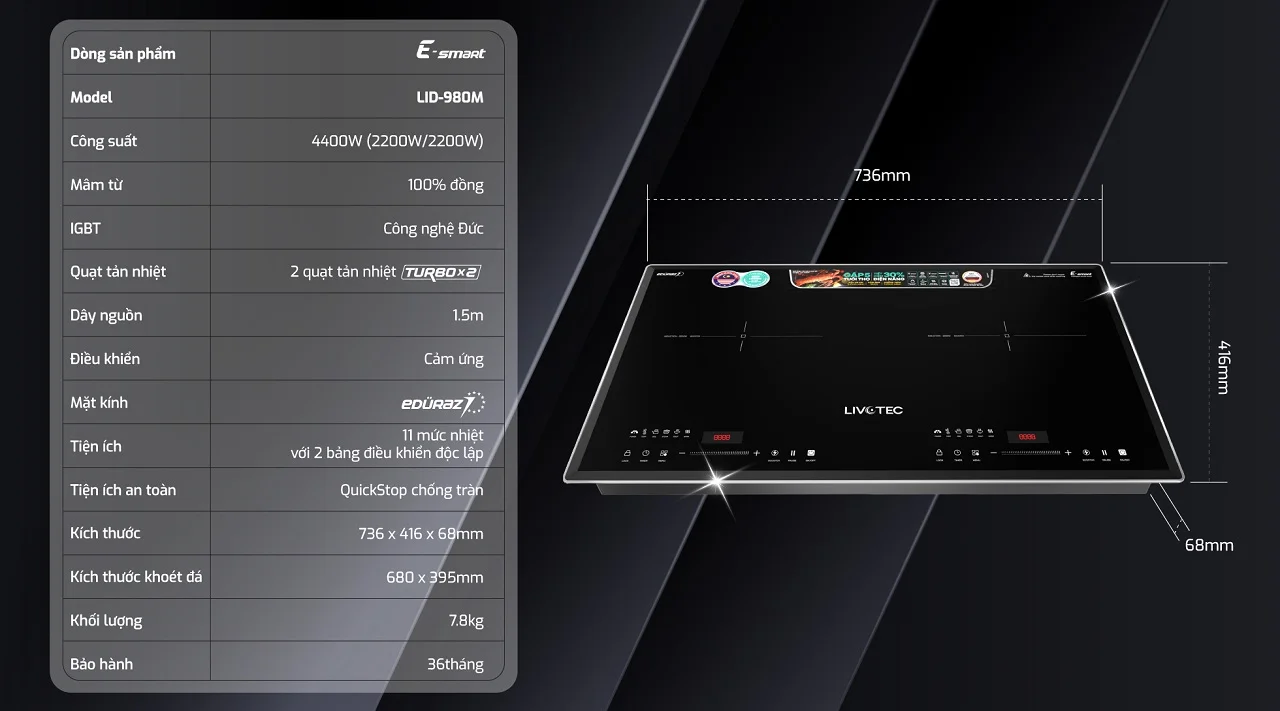 - Tuổi thọ gấp 5: Mâm từ 100% đồng & IGBT tiêu chuẩn Đức tăng tuổi thọ bếp lên đến 5 lần
