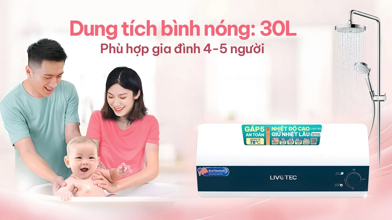 Nhiệt độ nước ổn định đến 78 độ C, dễ dàng điều chỉnh bằng nút xoay tích hợp đèn báo LED