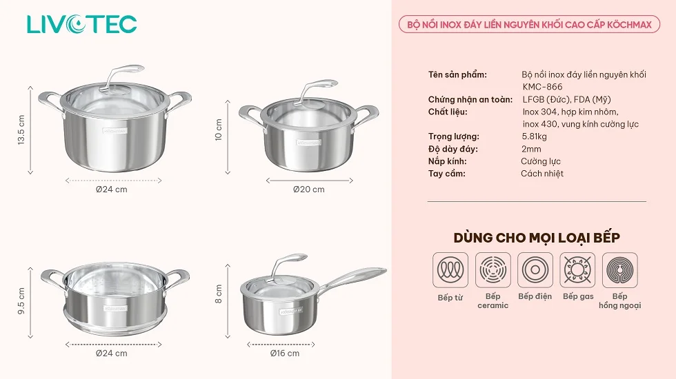 Bộ Nồi Inox Cao Cấp Kochmax KMC-866