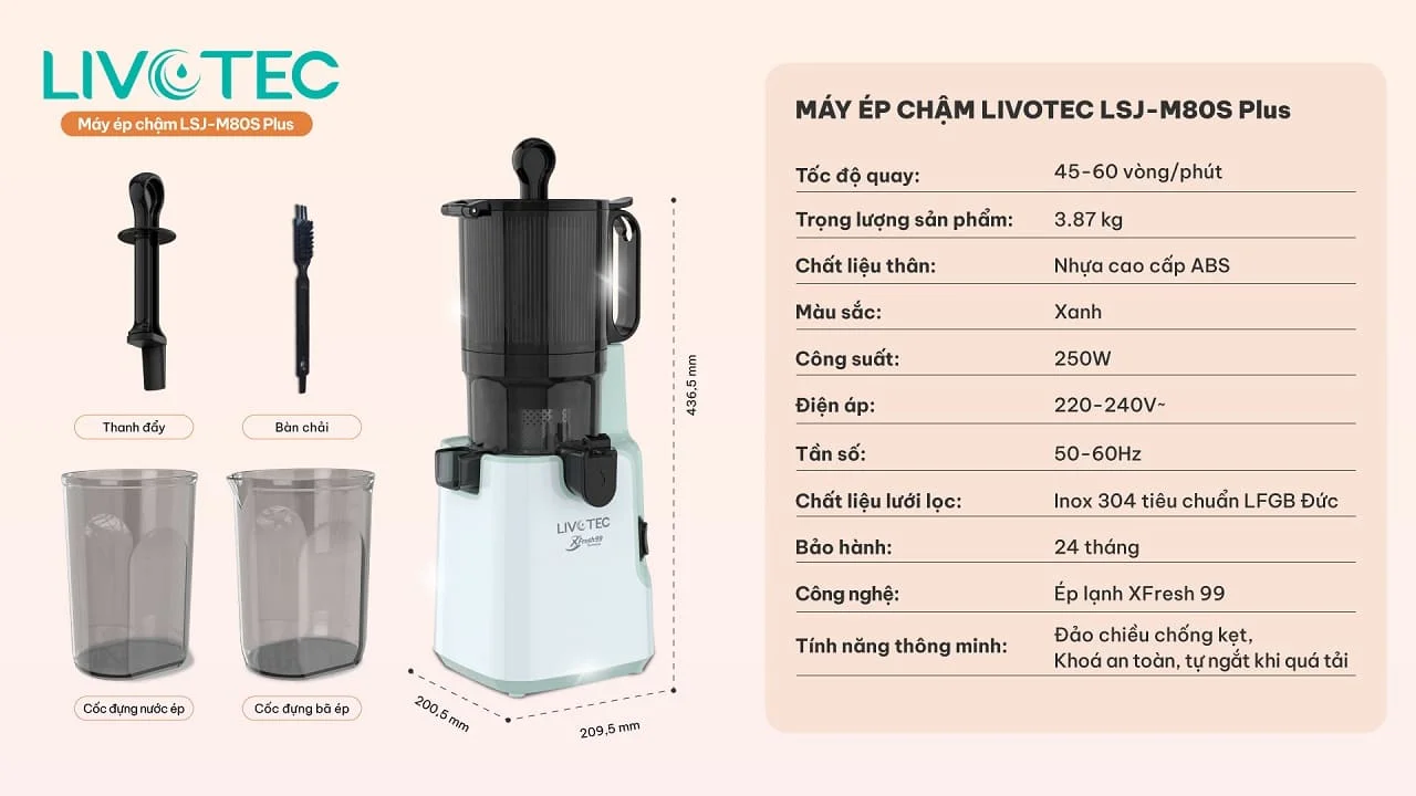 - Công nghệ ép lạnh XFresh99 – Ép chậm, không sinh nhiệt, giữ trọn 99% vitamin và dưỡng chất.