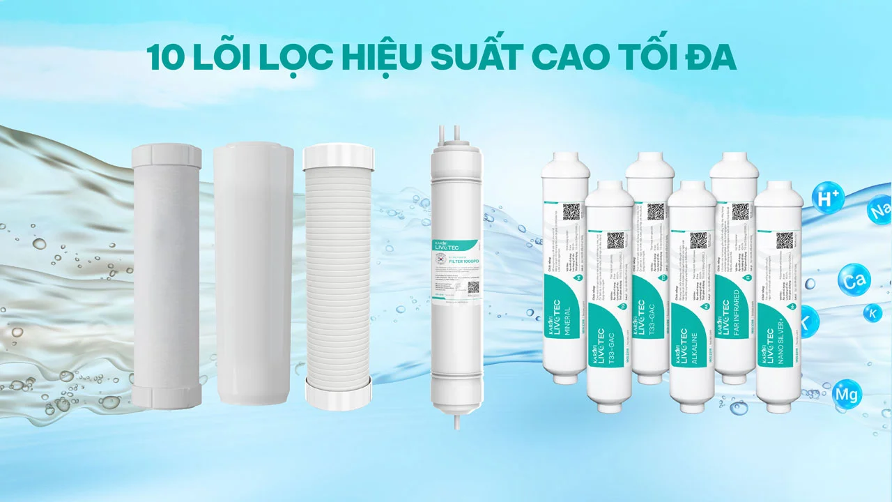 Hệ thống 10 lõi lọc công nghệ cao – lọc sạch tinh khiết – gấp 2 Hydrogen và khoáng chất