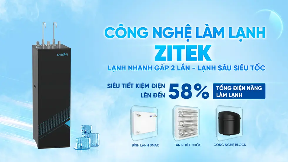 - Công nghệ làm lạnh máy nén hiệu suất cao Zitek làm lạnh nhanh gấp 2 lần, lạnh sâu siêu tốc, tiết kiệm đến 58% tổng điện năng làm lạnh