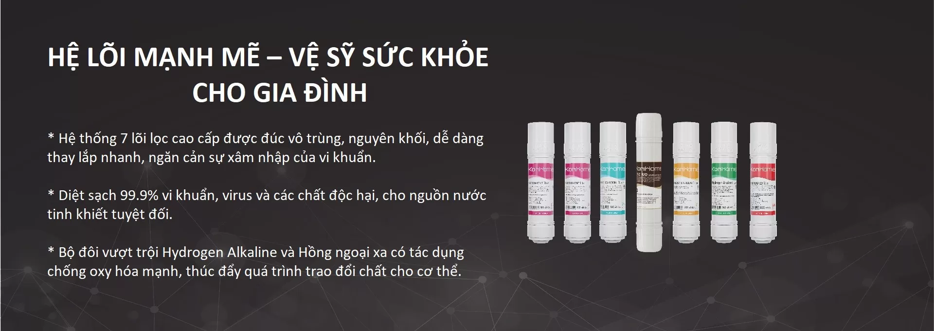 ✔ 7 lõi RO cao cấp – tạo nước kiềm, bổ sung khoáng