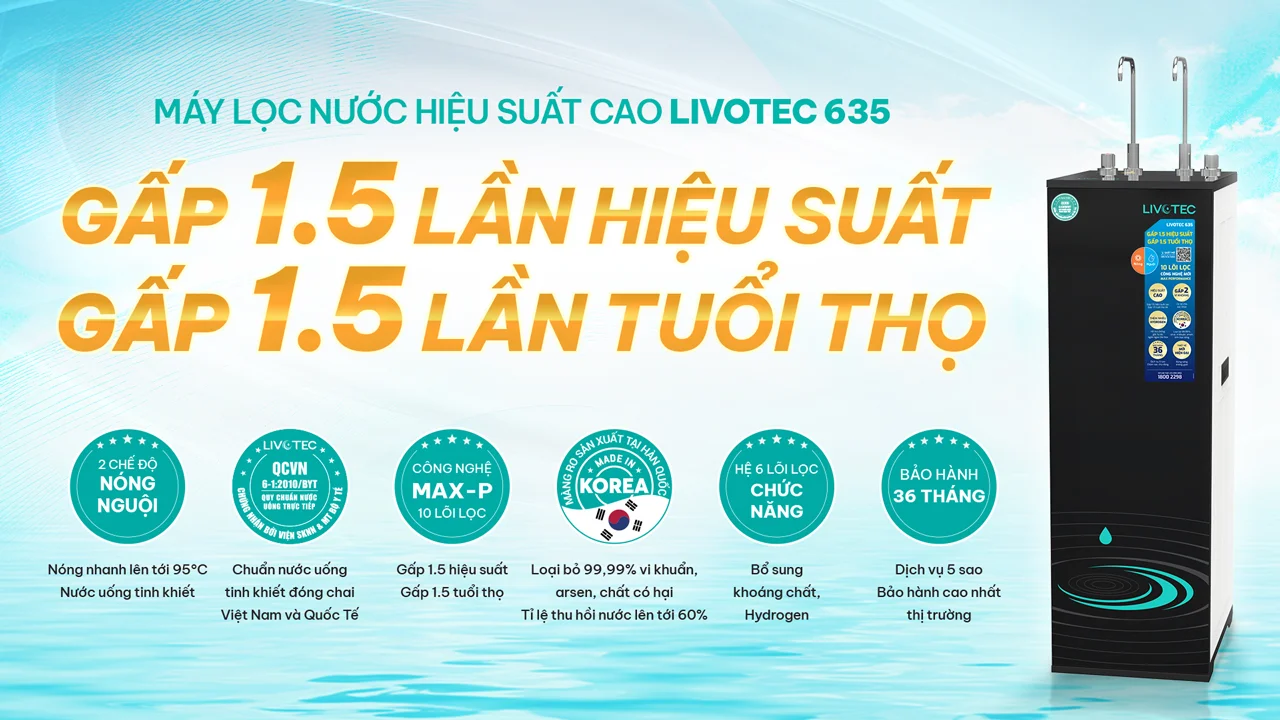 - 10 lõi lọc công nghệ Max-P giúp gấp 1,5 lần hiệu suất lọc, 1,5 lần tuổi thọ lõi, 1,5 lần lọc sạch