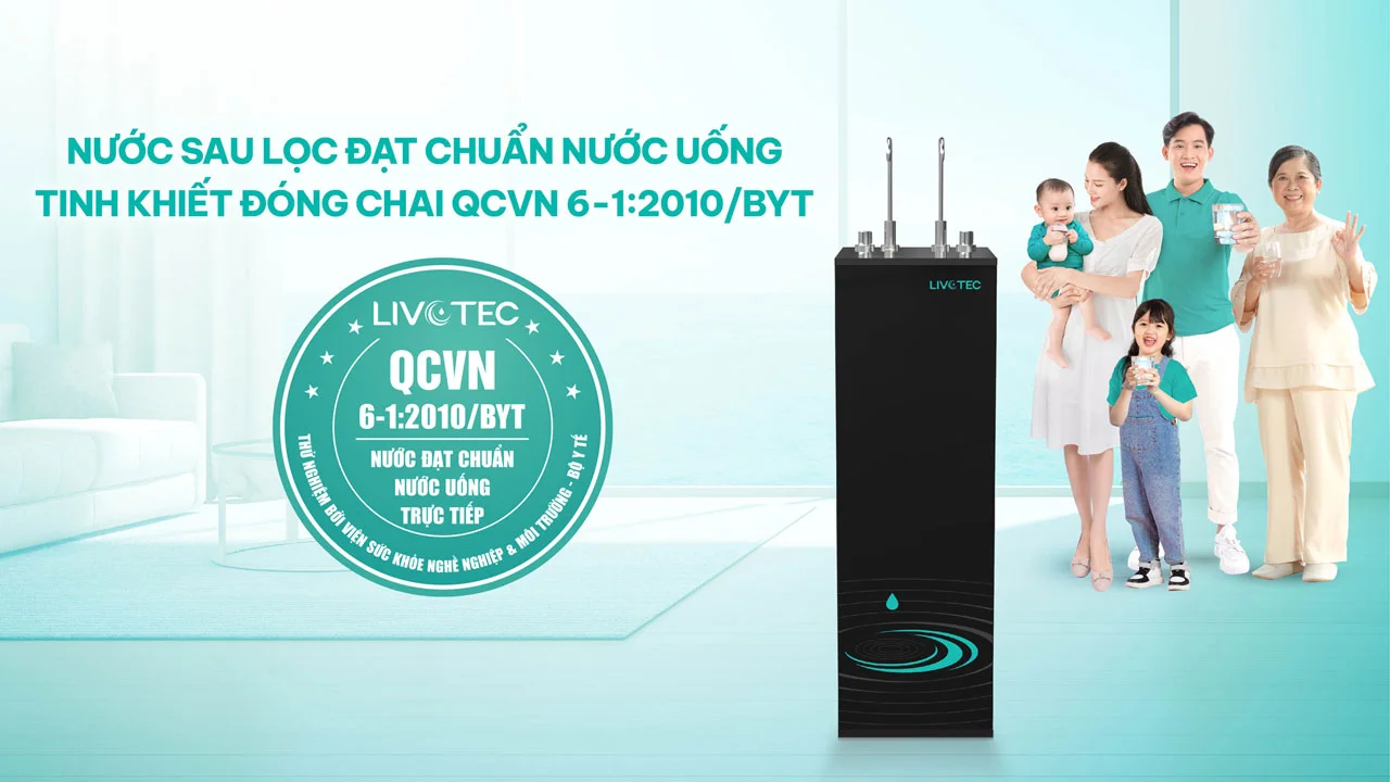 - Nước sau lọc đạt Chuẩn nước uống tinh khiết đóng chai QCVN 6-1:2010/BYT