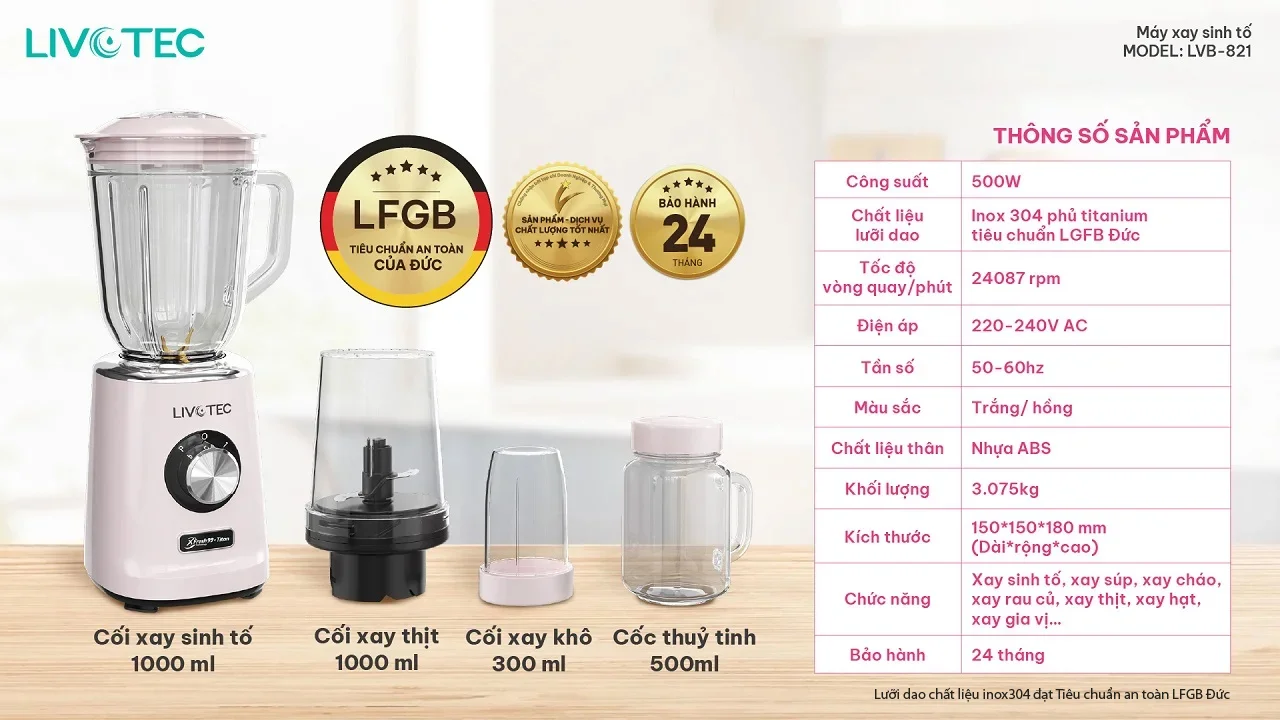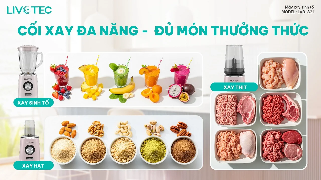 - Xay 3in1 kèm bình thủy tinh – Xay ướt, xay khô và vắt cam linh hoạt
