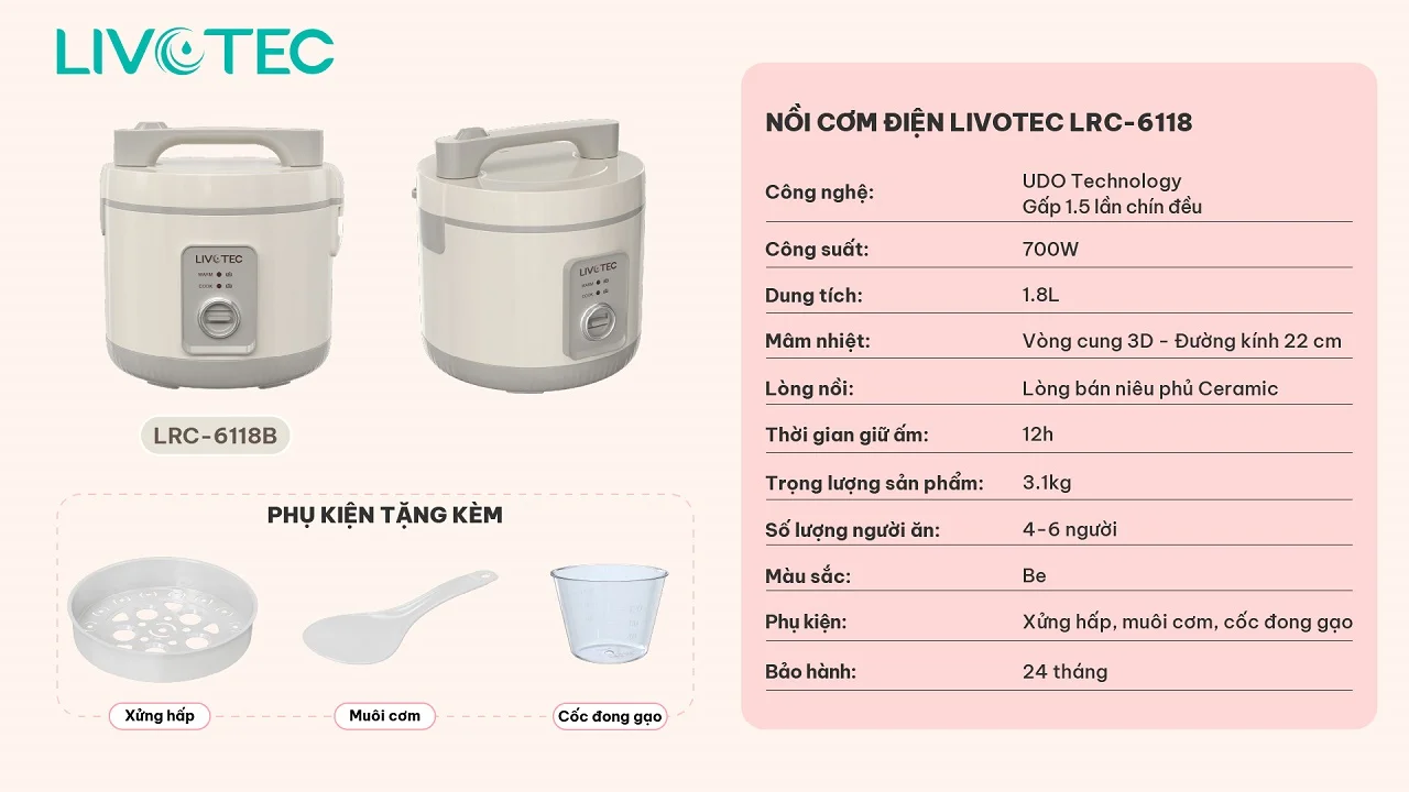 - Công nghệ UDO° & iCook 3.0, giữ cơm dẻo ngọt suốt 12 giờ.