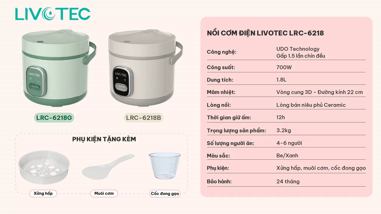- Công nghệ UDO° & iCook 3.0, giữ cơm nóng hổi, dẻo ngon suốt 12 giờ.