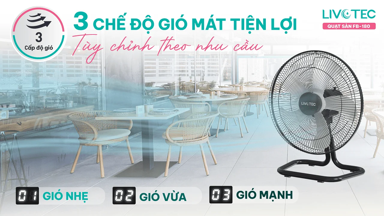 - 3 chế độ gió tiện lợi, tùy chỉnh linh hoạt theo nhu cầu làm mát.