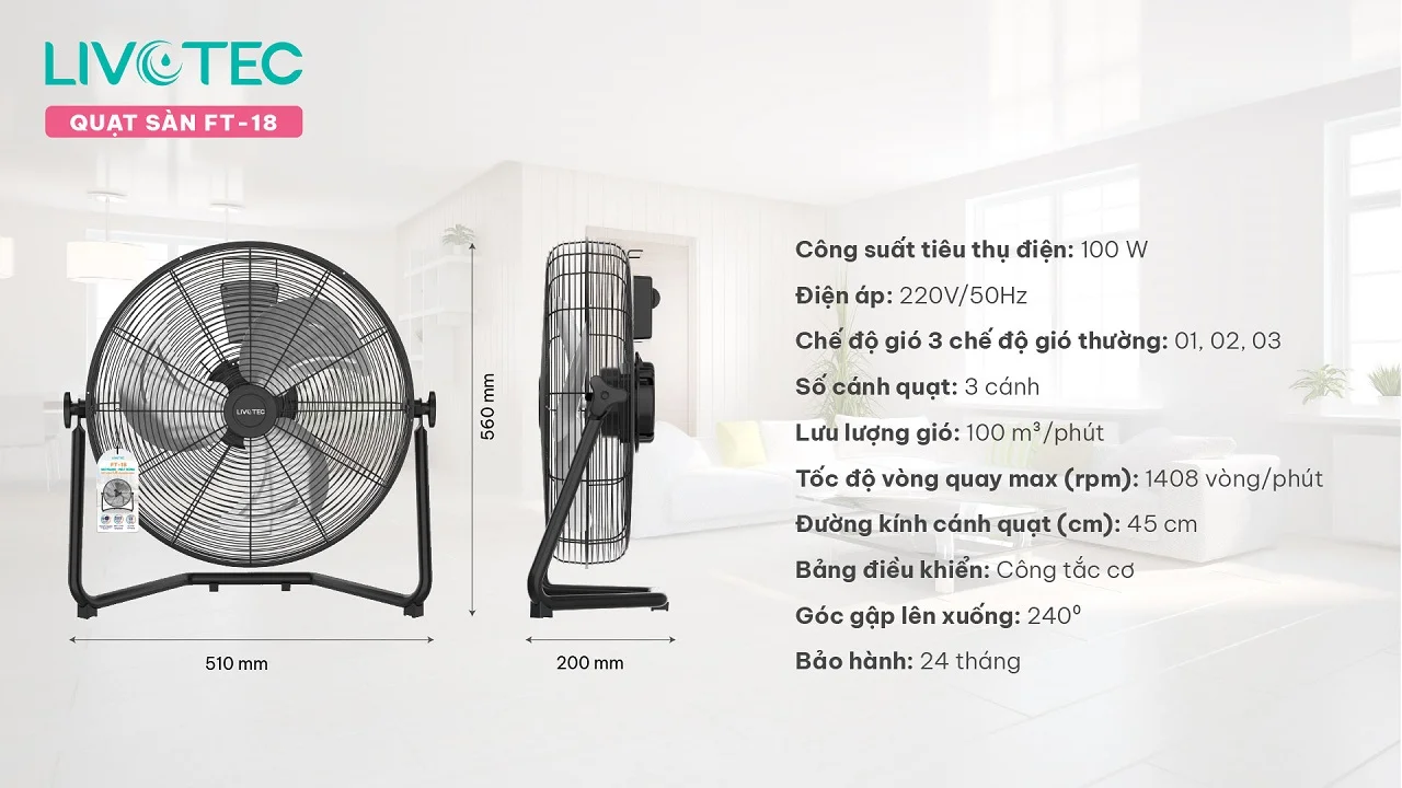 Động cơ AC bền bỉ, công suất 100W mạnh mẽ.