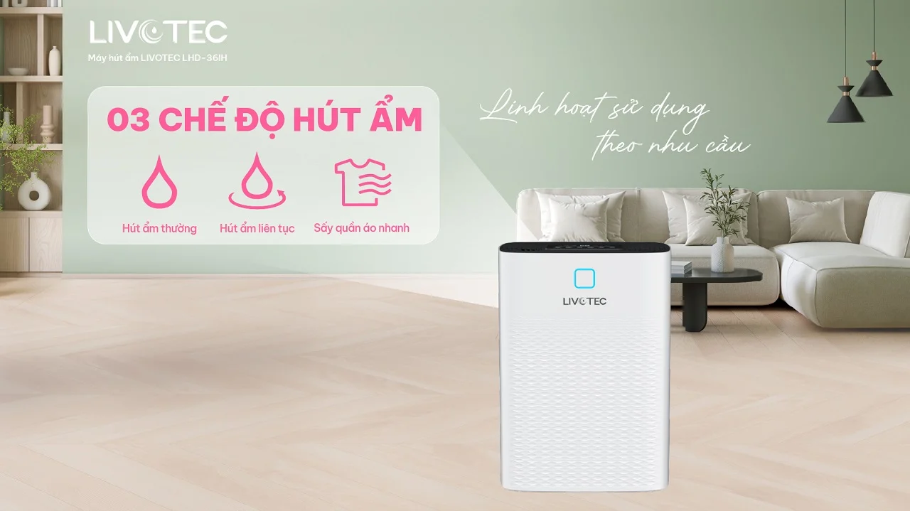 - 3 chế độ hút ẩm linh hoạt đáp ứng mọi nhu cầu