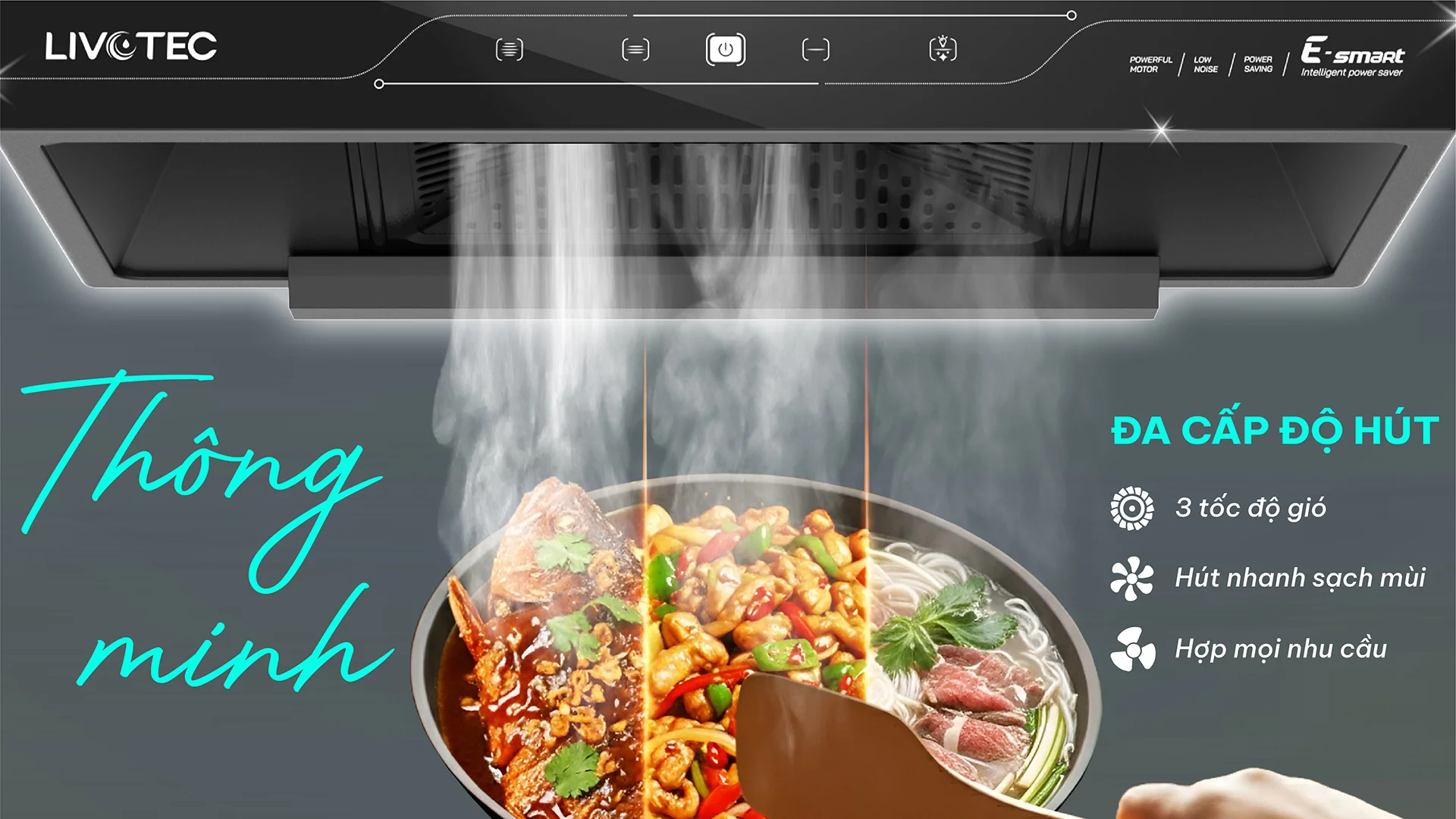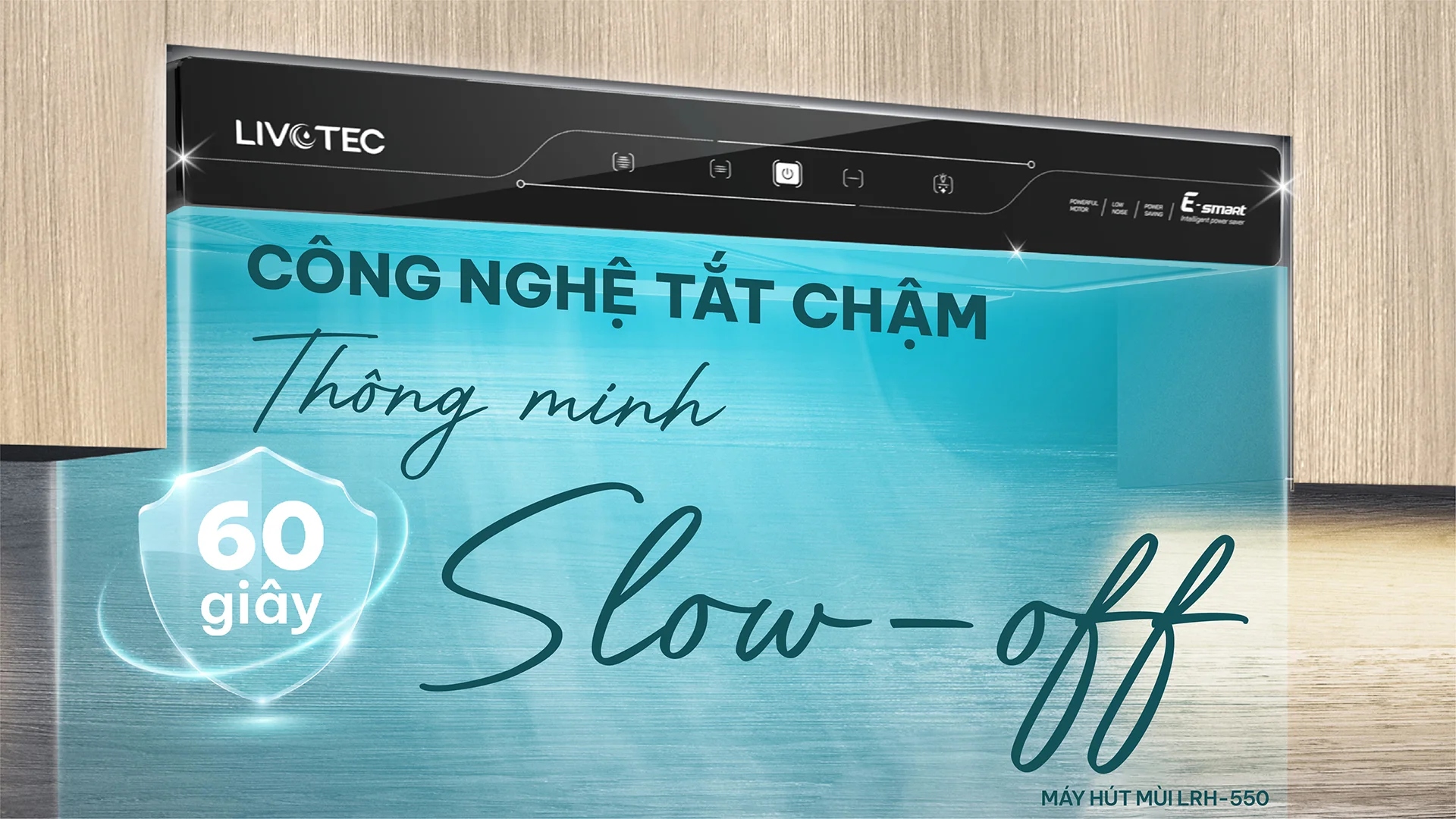 - SlowOff tắt chậm 1 phút khử sạch mùi, lưới lọc Pyramid inox bền bỉ bảo hành 24 tháng.