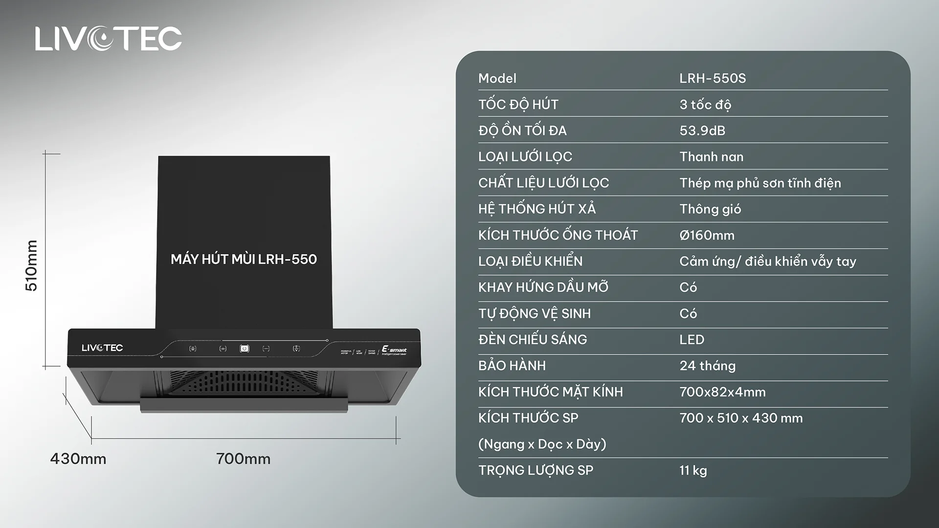 - MaxClean tự động làm sạch thông minh, khay hứng dầu mỡ tiện lợi, nan phủ tĩnh điện dễ vệ sinh.