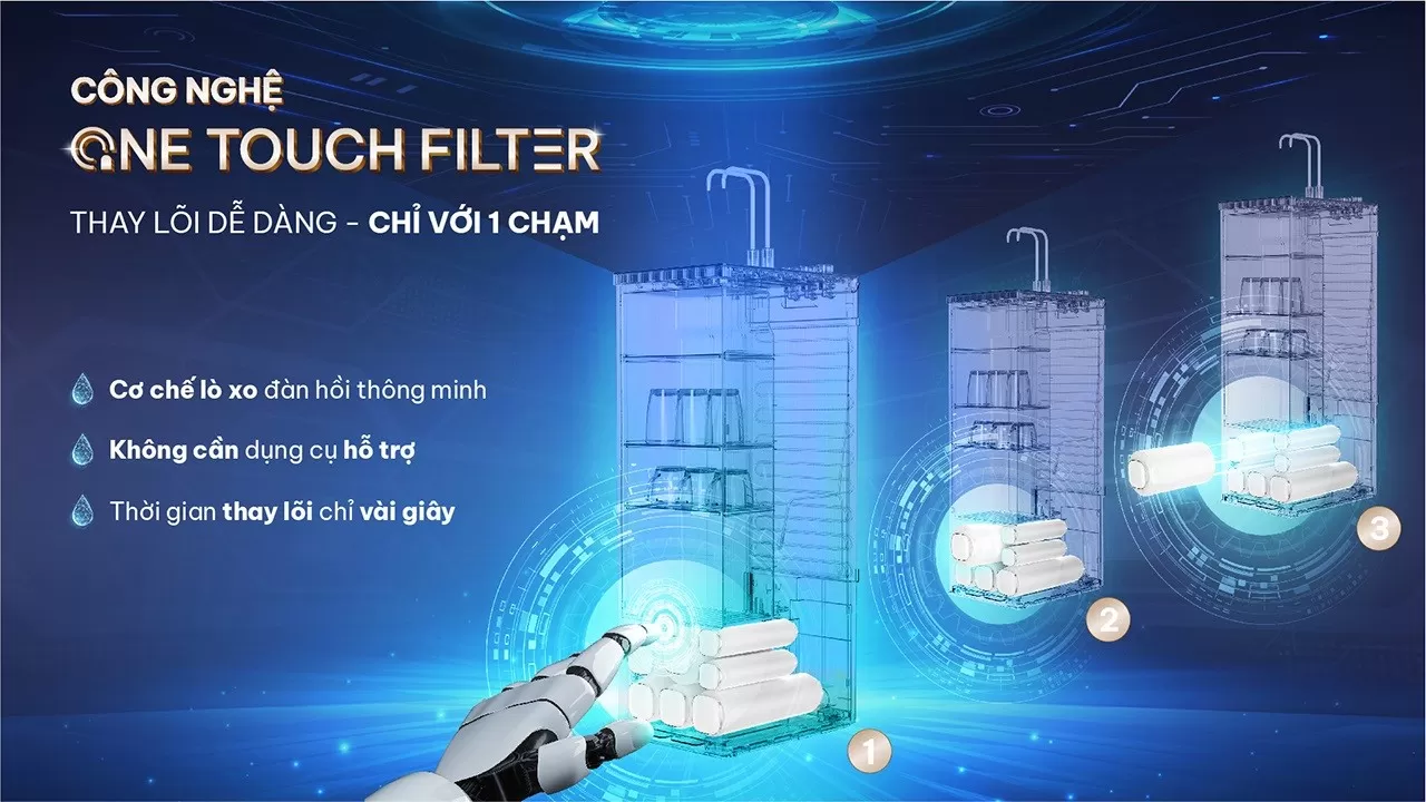 - Công nghệ One Touch Filter thay lõi dễ dàng, chỉ với 1 chạm