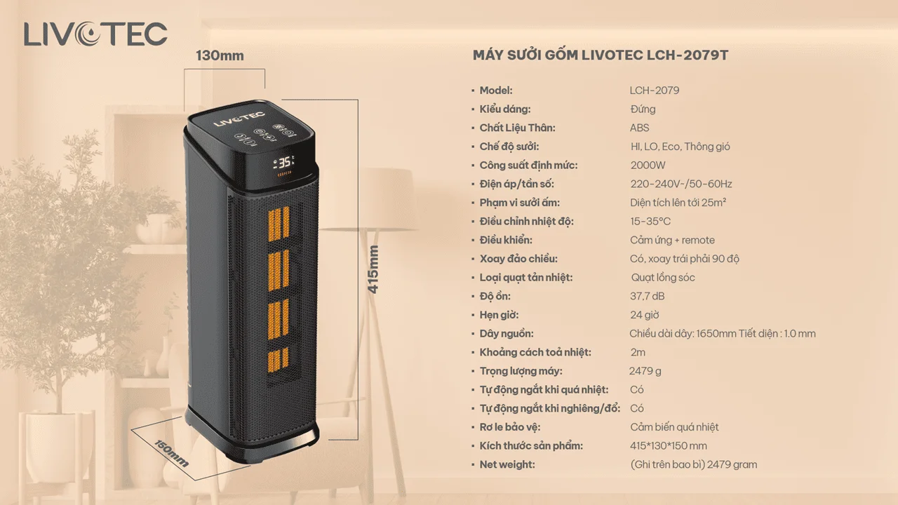 - Ấm nhanh chỉ sau 5 giây, lan tỏa khắp phòng.